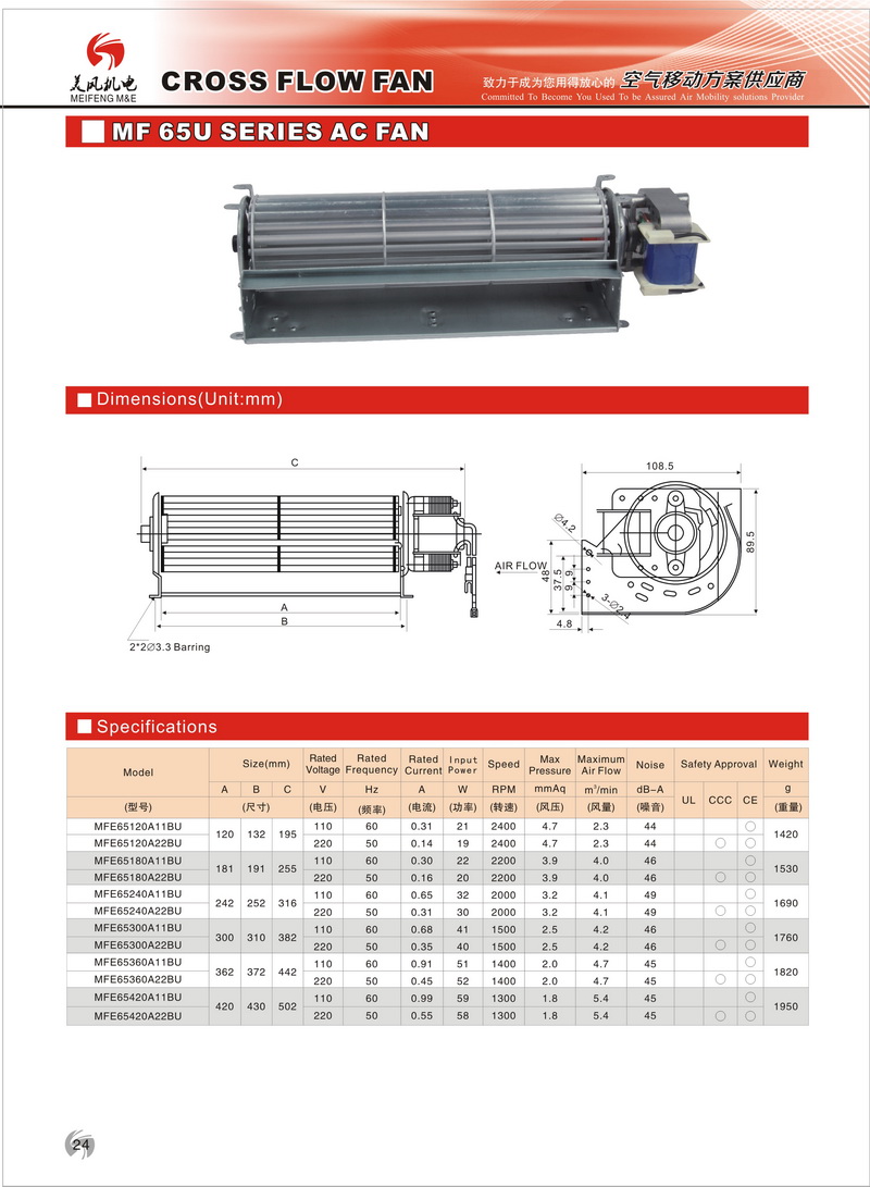 65系列橫流風(fēng)機(jī)1、軸 承:采用高精度滾珠軸承或含油軸承;
